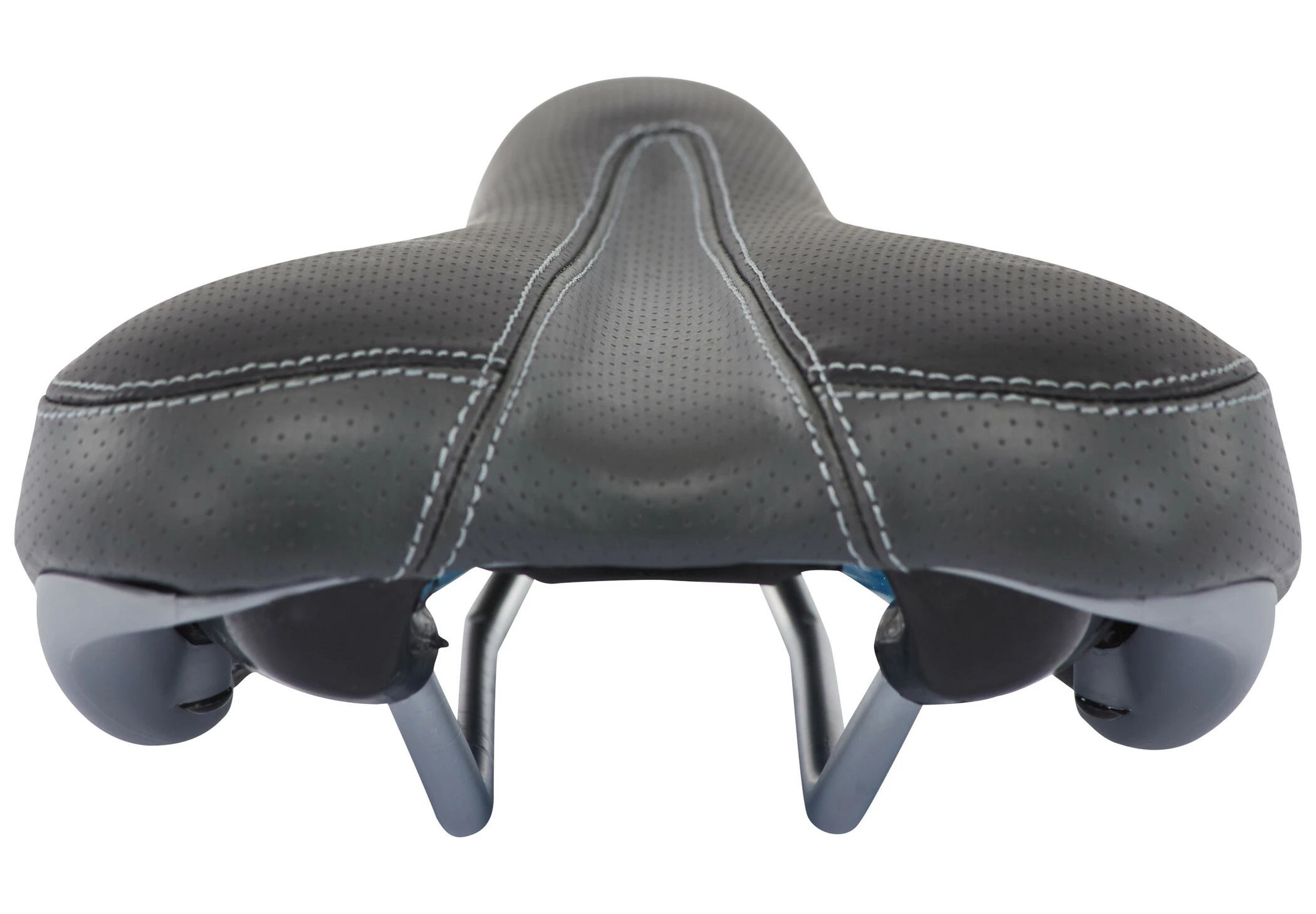 Anatomisch gepolsterter Herrensattel mit hochwertigem Polyurethan-Schaum sowie profilierter Satteloberfläche. Robuster Vinyl-Überzug sowie druckentlastende Aussparung im vorderen Bereich der Sattelschale sowie satiniertes Sattelgestell.